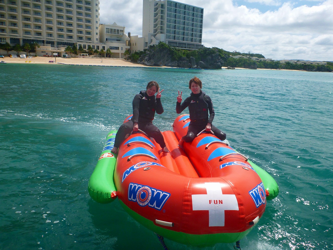 本日のフライボード挑戦者は大阪からお越しの`もつひろ`の2人でーす♪