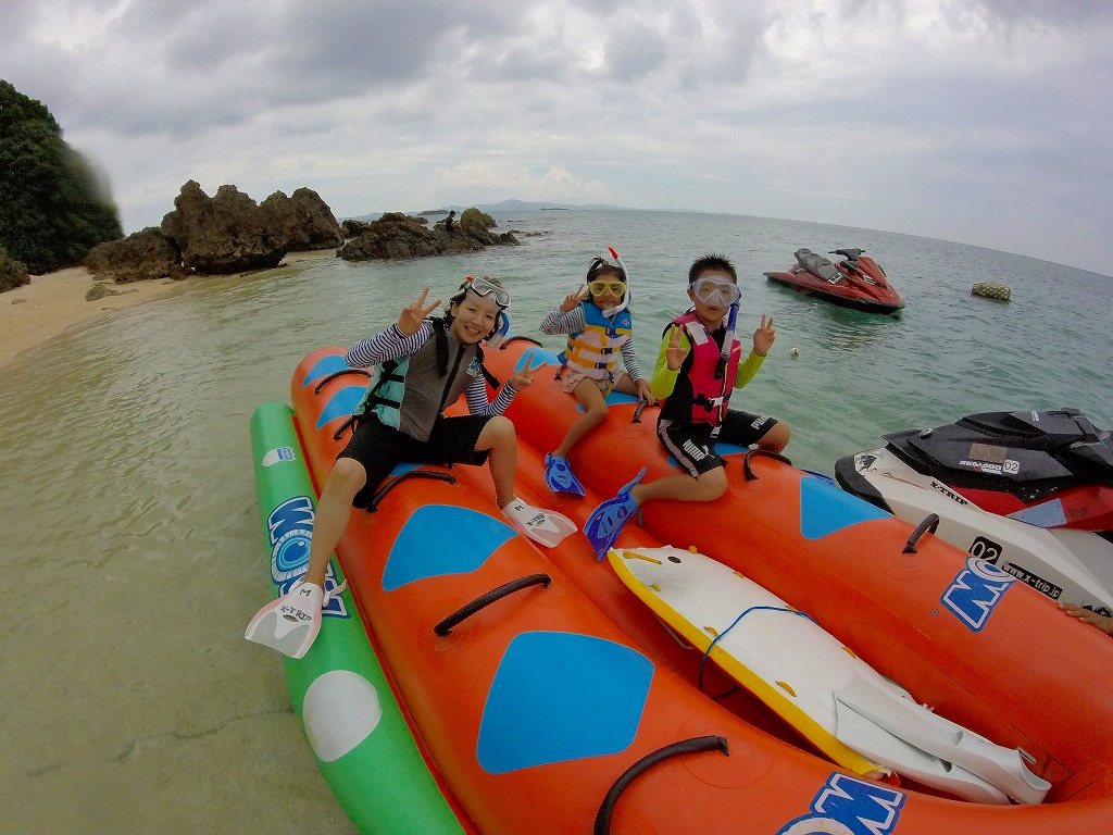 バナナボートでシュノーケルツアーに出発!