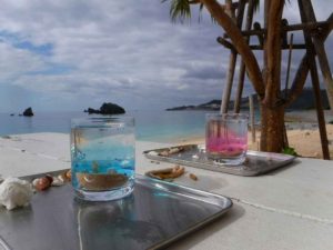 今日は、ビーチサイドにて可愛い女子2人がジェルキャンドルを作りに来ました。