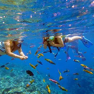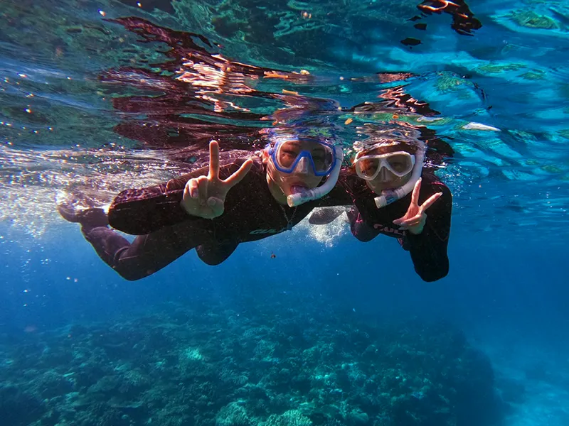 みんな島は沖縄本島の沖合15分にある小さな島です。ケラマ諸島に負けないくらい白い砂浜と青く透明度抜群の海で水中の世界を楽しもう!X-TRIPでは、シュノーケルスクールを開催するので、初心者や泳げない方も安心!シュノーケルでお魚と遊び海に慣れたら、陸上とは別世界のサンゴやトロピカルフィシュなど綺麗な水中の世界 を体験してみよう!