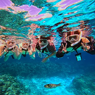 みんな島は沖縄本島の沖合15分にある小さな島です。ケラマ諸島と同じくらい白い砂浜と青く透明度抜群の海で、のんびり海水浴や浮き輪で水面をプカプカ♪、白い砂浜に立てられたパラソルの陰で潮風に吹かれお昼寝など、いるだけで癒される楽園を楽しもう!スノーケリングスクールを体験し自信がついたら、大きな遊泳区域でお魚ウォッチングしましょう!慣れたらボートで沖合のリーフへ!本当に透明度が高く、多くのトロピカルフィシュに感動体験できます。